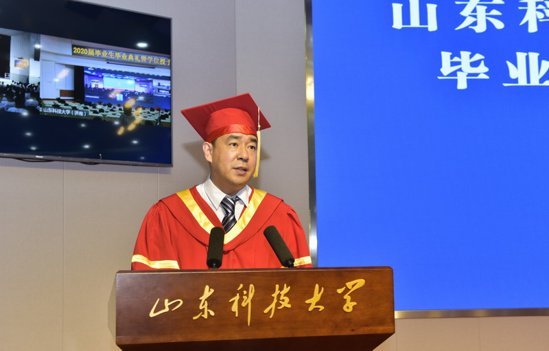 副校长曾庆田主持毕业典礼暨学位授予仪式,副校长高建广宣读省级及校级优秀毕业生名单、西部计划志愿者名单、“我最难忘的恩师”名单。党委书记罗公利、副书记尹华、副校长周东华、纪委书记夏侯雪娇、副校长张英杰分别向优秀毕业生代表及西部计划优秀志愿者颁发荣誉证书、向毕业生代表颁发毕业证书、向“我最难忘的恩师”颁发证书。副校长李玉霞宣读乐鱼线上平台(集团)官方网站学位授予决定,全体校领导为毕业生代表授予学位、扶正流苏并颁发学位证书。党委副书记王少鹏、副校长孙鹤汀分别在泰安和济南分会场参加典礼。2020年学校共有11209名毕业生,其中,省级优秀毕业生585名,校级优秀毕业生874名。即日起,1万余名毕业生将各奔东西、奔赴大江南北,踏上新的人生旅途。