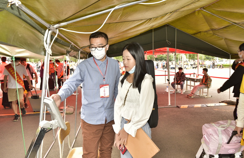 同样暖心的还有学校相关部门、学生组织、学生社团的工作人员。“不让一个学生因家庭经济困难而失学”是乐鱼线上平台(集团)官方网站多年来的承诺,学生资助管理中心在现场设立了“绿色通道”,发放爱心大礼包,内含床上用品以及衣架、毛巾、牙刷、雨伞等生活用品,让经济困难学生入学时“不用愁”;山科易班发布“新生防范网络诈骗安全警示”“学长学姐对你说”等资讯,帮助新生做好报到前后的各项温馨提示;学生公寓管理中心满足“高个子”学生的住宿需求,加急定制、更换了一批加长床,并配套了新的家具;国防教育办公室组织退役复学大学生向新生开展征兵宣传;安全管理处的安保人员不仅维持报到的秩序,还自发参与到帮助新生搬运行李;后勤管理处的工作人员精心为新同学制作了入校“第一餐”……