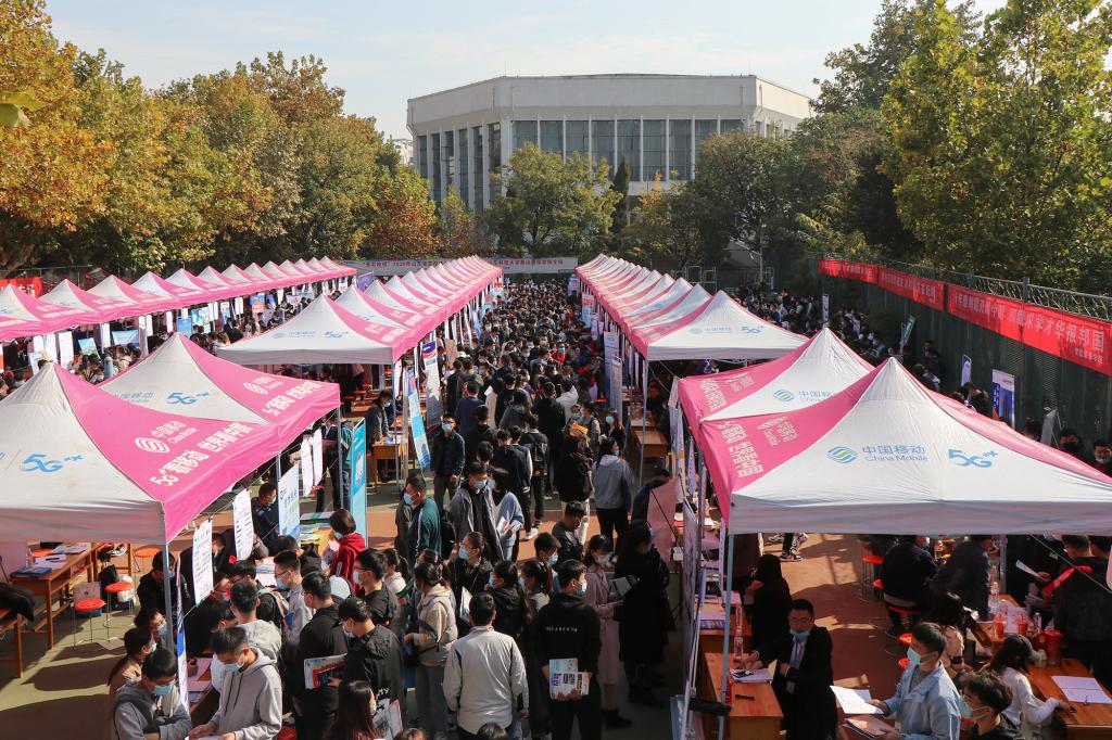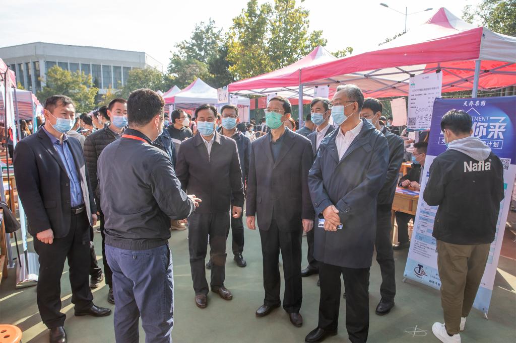 10月25日,“多彩校招”2020年山东省高校毕业生集中招聘活动专场暨乐鱼线上平台(集团)官方网站泰安校区毕业生供需见面会在泰安校区东校园排球场举行。校党委副书记兼泰安校区党工委书记、管委主任王少鹏,山东省公共就业和人才服务中心就业服务处副处长杨高扬,泰安市人才交流中心主任徐太国到供需见面会现场指导工作,看望用人单位及求职学生,并与用人单位负责人和现场毕业生进行交流。