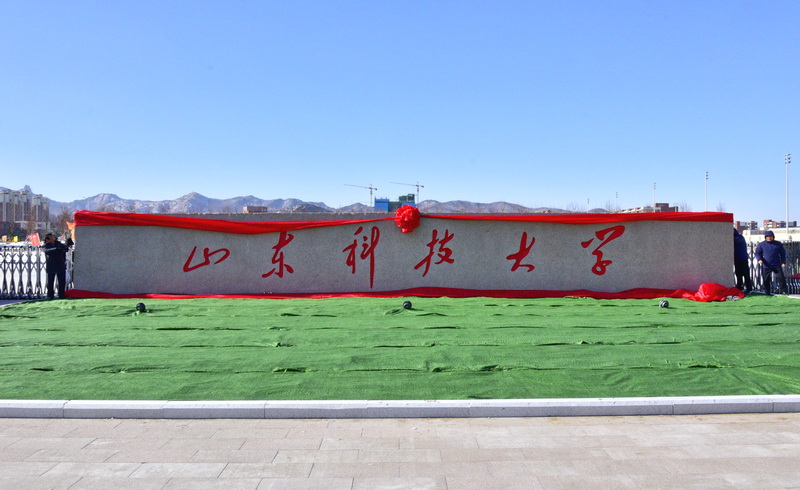 校名石长17米,高2.2米,宽1.1米,重约120吨,校名石选用材质坚硬、颜色醒目的红色花岗岩石材,整个造型浑然天成,简洁大方,端庄厚重。它承载着学校深厚的文化底蕴,饱含着科大人砥砺奋进的汗水与付出,蕴含着莘莘学子的聪明才智,更凝聚着广大校友和社会各界对学校的殷切期望。