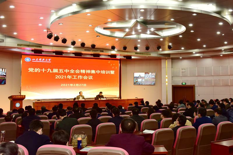 人勤春来早,奋进正当时。2月26日-27日,新学期开学前夕,学校召开党的十九届五中全会精神集中培训暨2021年工作会议,教育引导广大党员干部提高政治站位、增强政治自觉,切实把思想和行动统一到全会精神上来,以优异成绩庆祝中国共产党成立100周年和建校70周年。校党委书记罗公利出席会议并作了题为“科学谋划 强化落实 奋力实现学校‘十四五’良好开局”的讲话,也是在新学期为全体党员干部上了一堂生动的党课。校党委副书记尹华代表学校对寒假工作进行了总结并对2021年工作进行了部署。