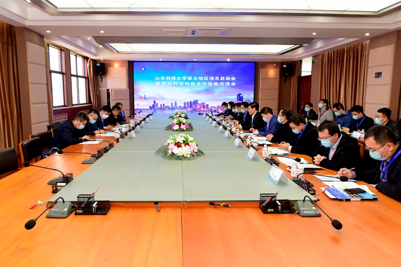 副校长孙鹤汀出席会议并致辞。中国科技交流中心亚非与独联体处处长张楠一行,山东省科技厅科技合作处四级调研员冯凯、山东省国际人才交流服务中心副主任田小元,青岛市科技局二级调研员焉岿然参加会议。