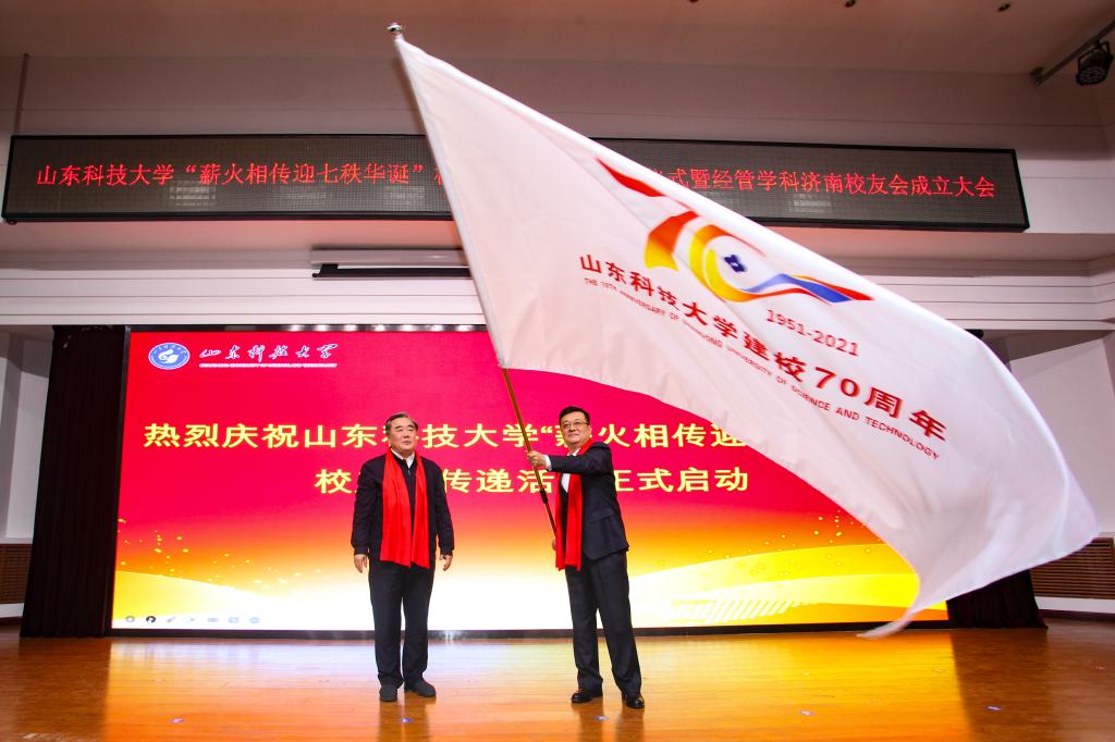 姚庆国向经济与管理学科济南校友会新当选会长授旗