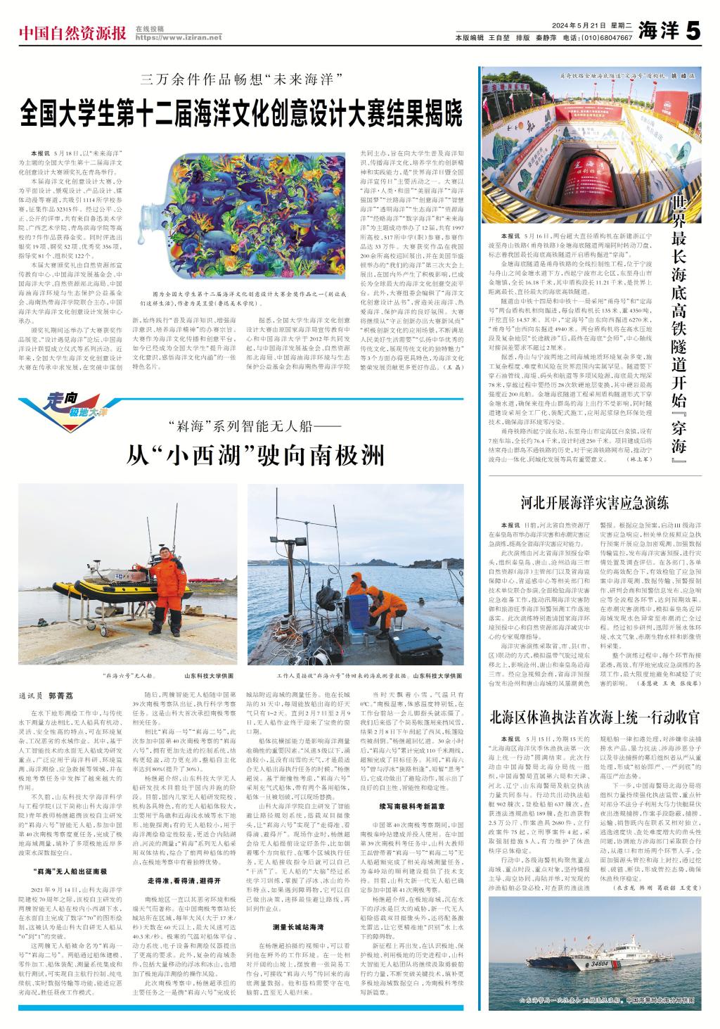 中国第40次南极考察期间,中国南极秦岭站建成并投入使用。在中国第39次南极科考任务中,山科大教师王磊曾带着“嵙海一号”“嵙海二号”无人船超额完成了相关海域测量任务,为秦岭站的顺利建设提供了技术支持。目前,山科大新一代无人船已确定参加中国第41次南极考察。