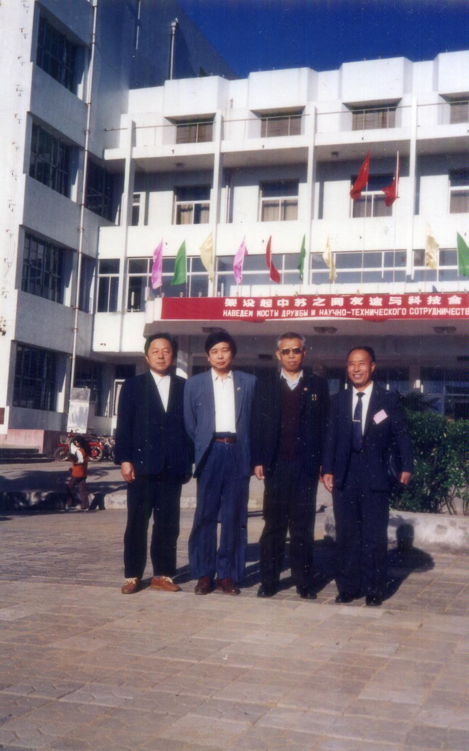 于润桥(左二)参与筹办中苏科技交流会议,右二为霍万库