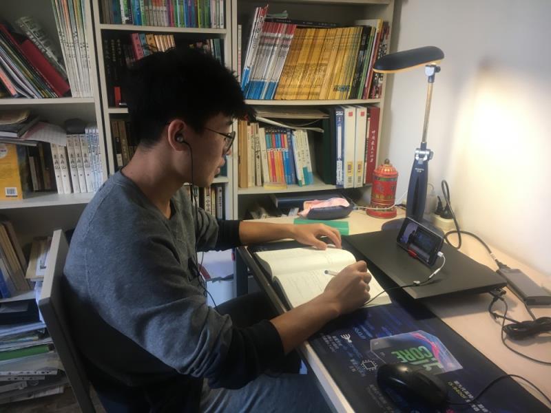 机电学院冯昊炜同学在上网课