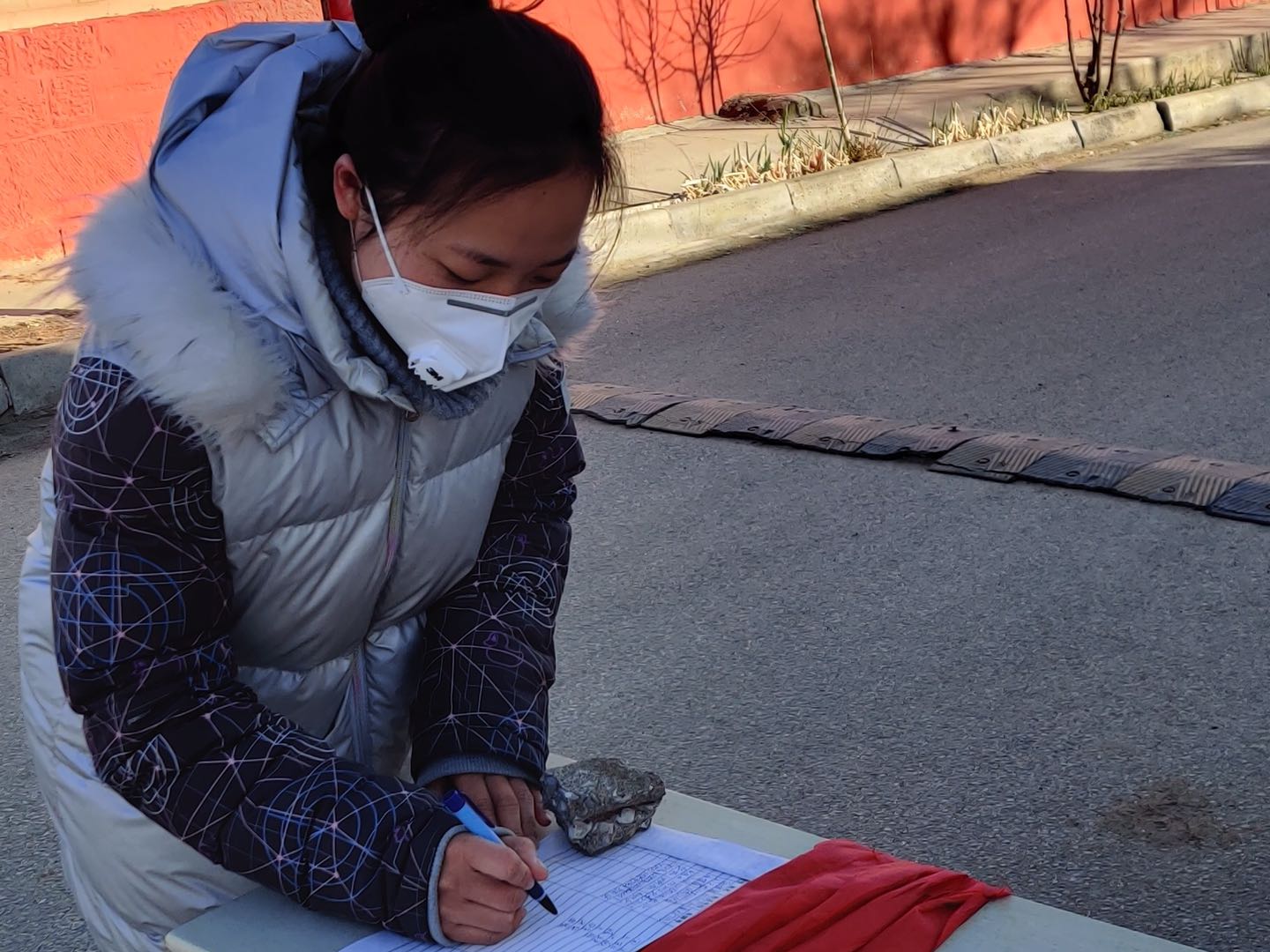 95后退伍学生耿璠在村里统计防疫信息