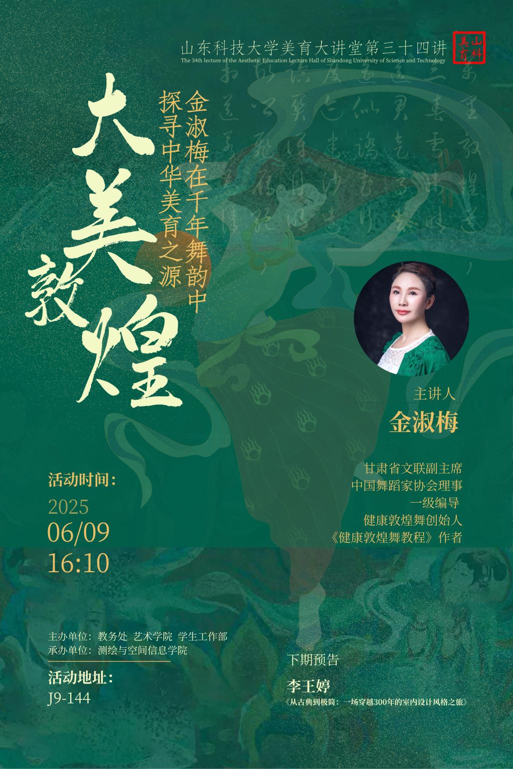 【山科美育】乐鱼线上平台(集团)官方网站美育大讲堂第三十四讲《大美敦煌:金淑梅在千年舞韵中探寻中华美育之源》