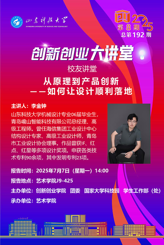 创新创业大讲堂2025年第8期总第192期:从原理到产品创新——如何让设计顺利落地