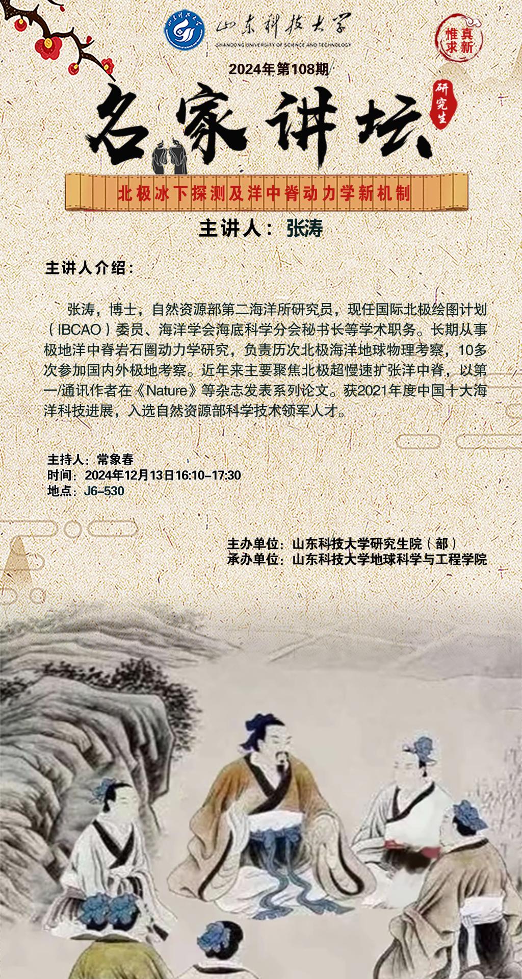 “名家讲坛”2024年第108期:北极冰下探测及洋中脊动力学新机制(总1002期)