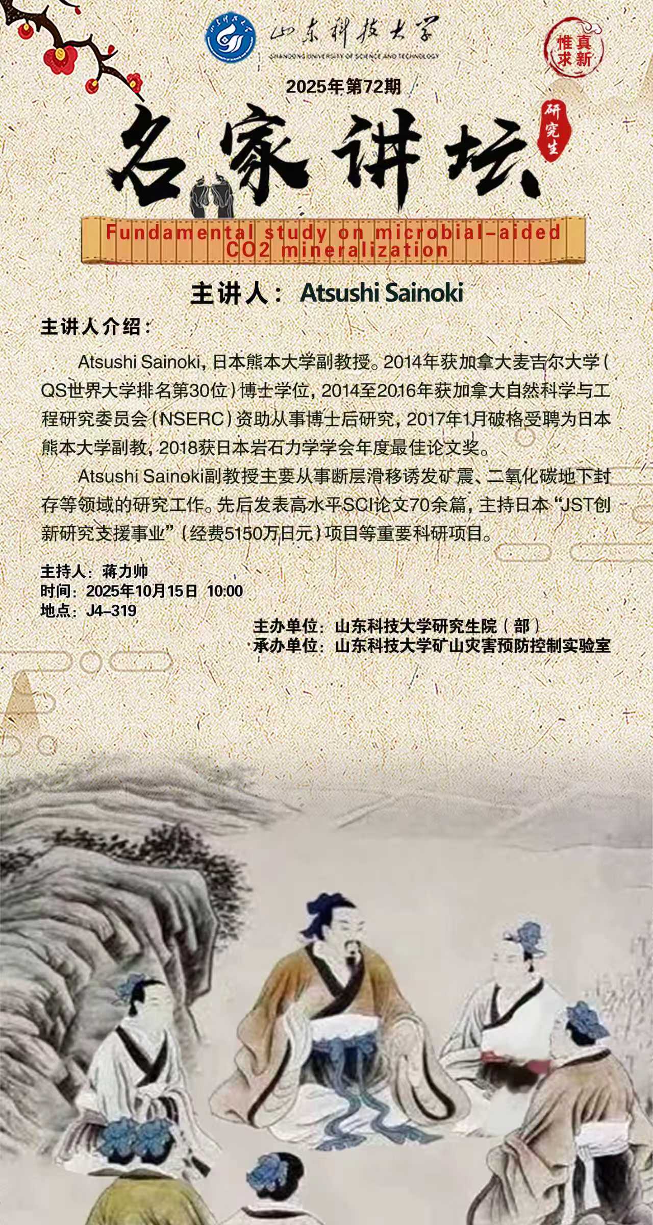 “名家讲坛”2025年第72期:Fundamental study on microbial-aided CO2 mineralization(总1077期)