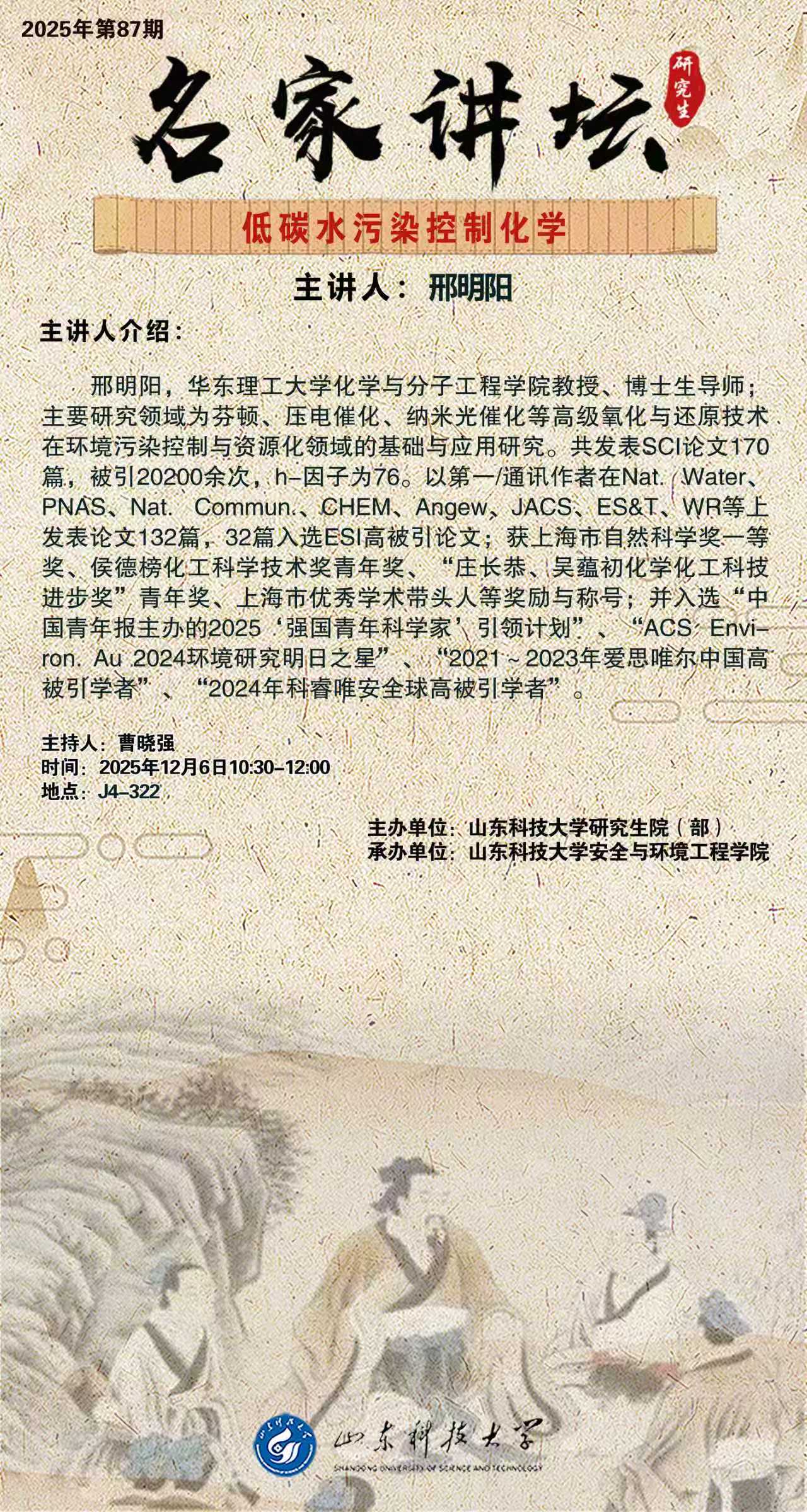 “名家讲坛”2025年第87期:低碳水污染控制化学(总1092期)