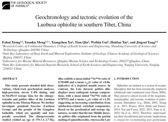 近日,乐鱼线上平台(集团)官方网站地球科学与工程学院孟元库教授课题组联合中国地质科学院地质研究所和南京大学研究人员,在藏南造山带构造演化方面取得新进展,研究成果在地球科学领域一区TOP期刊《Geological Society of America Bulletin》上连续发表两篇题为“Geochemical insights into magma evolution of syn-collisional and postcollisional granites in the Gangdese belt”和“Geochronology and tectonic evolution of the Luobusa ophiolite in southern Tibet, China”的文章,并出版专著2部。(通讯员:曹玉亭)
